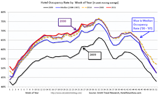 The 4-week average of the occupancy rate is solidly above the median for 2000-2007, and above last year.