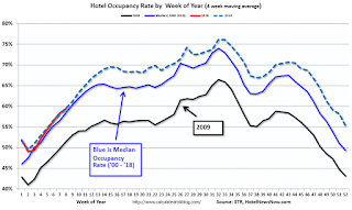 The red line is for 2020, dash light blue is 2019, blue is the median, and black is for 2009 (the worst year probably since the Great Depression for hotels).