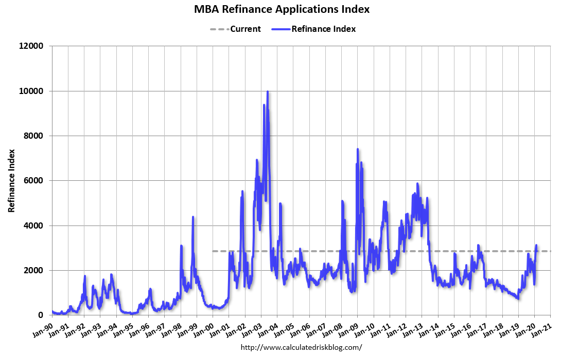 With lower rates, we saw a sharp increase in refinance activity, but mortgage rates would have to decline further to see a 2012 size refinance boom.