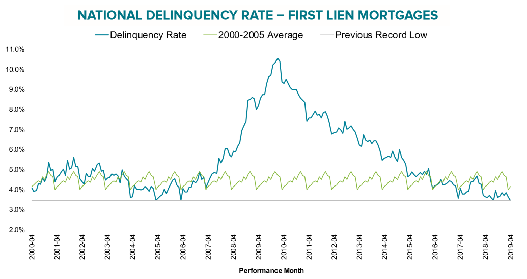 • The national delinquency rate declined by 5% in April alone, bringing the aggregate 2019 YTD improvement to -10.6%